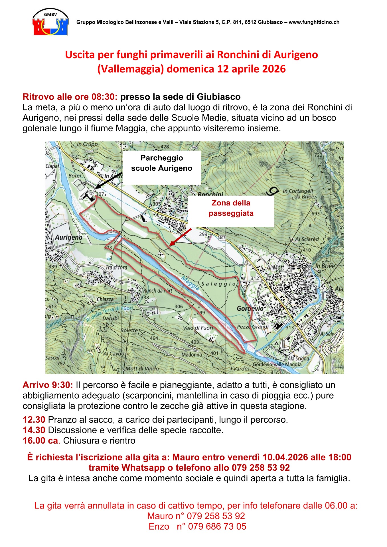 ESCURSIONI: il GMBV declina qualsiasi responsabilità in caso di incidenti.